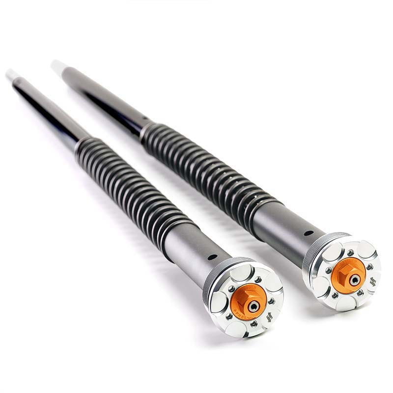 Paire de cartouches à réglage hydraulique pour fourche d'origine, développées selon nos spécifications et équipées d'un système hydraulique sophistiqué qui garantit des performances exceptionnelles.