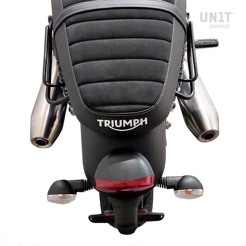 Conçu sur le cadre Triumph, il s'intègre parfaitement au reste de la moto. Prêt à accueillir notre système d'attache rapide, beau et minimal même lorsque le sac n'est pas monté.
