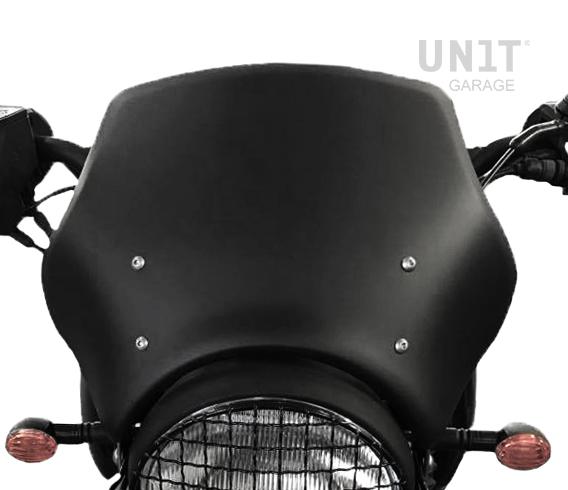 Carénage Unitgarage, très léger, en résine spéciale et MAT avec renforts en fibre de carbone. Fabriqué dans un matériau souple et résistant, malgré sa petite taille, il offre une excellente protection contre le vent tout en maintenant un design minimal.