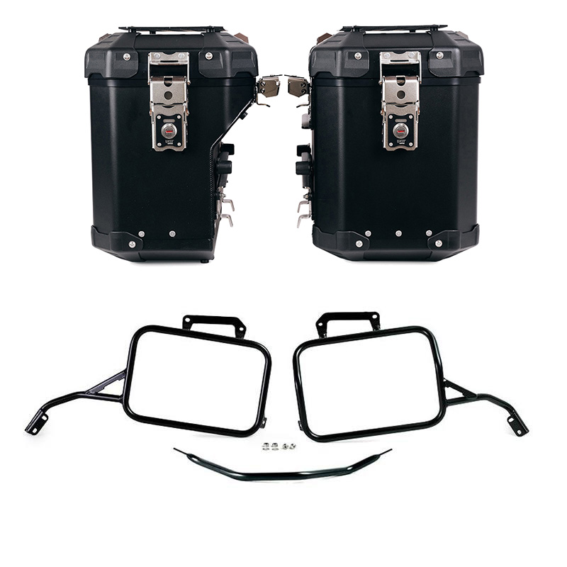 1. Paire de sacoches latérales en aluminium. Version 48L + 41L (côté échappement)