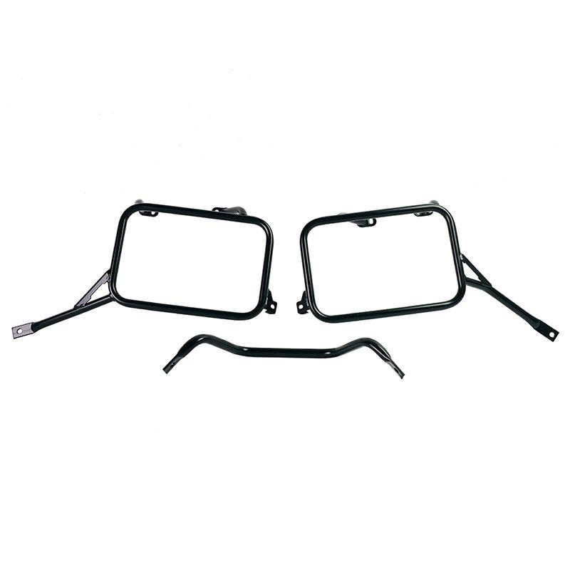 Cet ensemble complet de cadres en acier inoxydable permet de monter des valises en aluminium ou d'autres valises compatibles avec les cadres classiques en tube de diamètre 18 mm sur les modèles G/S. Ils s'intègrent parfaitement au reste du vélo, prêts à accueillir nos sacoches en aluminium de différentes tailles ou nos sacoches souples compatibles avec ce type de cadre. Ils sont livrés complets avec kit de montage et vis.