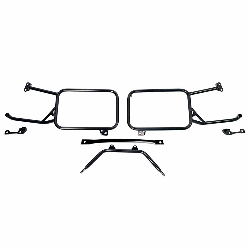 Cet ensemble complet de cadres en acier inoxydable vous permet de monter nos boîtiers Atlas Aluminium, le UG002 ou le U003 sur les modèles Stelvio. Ils s'intègrent parfaitement au reste du vélo. Il est livré complet avec kit de montage et vis. Il peut être facilement monté sur la moto dans sa configuration d'origine. Ils peuvent être utilisés confortablement avec un passager à bord et sont compatibles avec tous nos accessoires.
