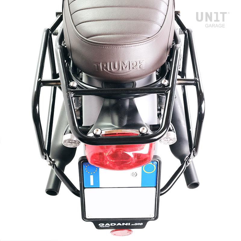 NB : Pour monter les cadres latéraux sur le modèle T120 vous devez vérifier que votre moto dispose de la poignée de maintien arrière d'origine Triumph code A9758329.