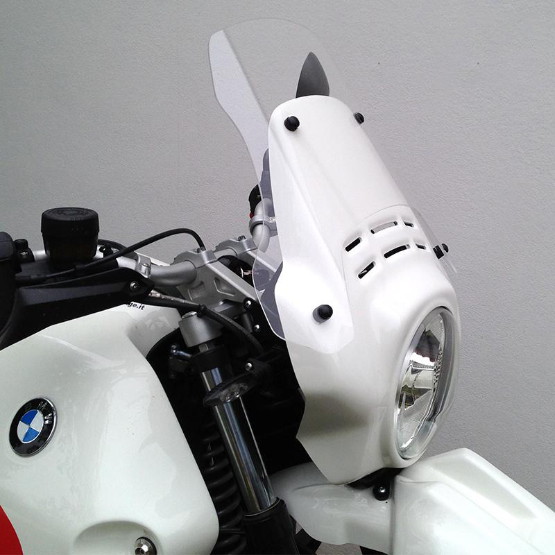 Extension en matériau souple et résistant. Tout en conservant le design minimaliste du légendaire dôme Fenouil, il garantit le même abri que le dôme GS d'origine. Avec cette extension, vous bénéficierez d'un confort maximal pour les longs voyages sans renoncer à l'aspect minimal de votre KIT. Il est livré avec des supports et des vis, prêts pour un assemblage facile. NB peut également être monté sur le pare-brise d'origine de la R80 GS PD.