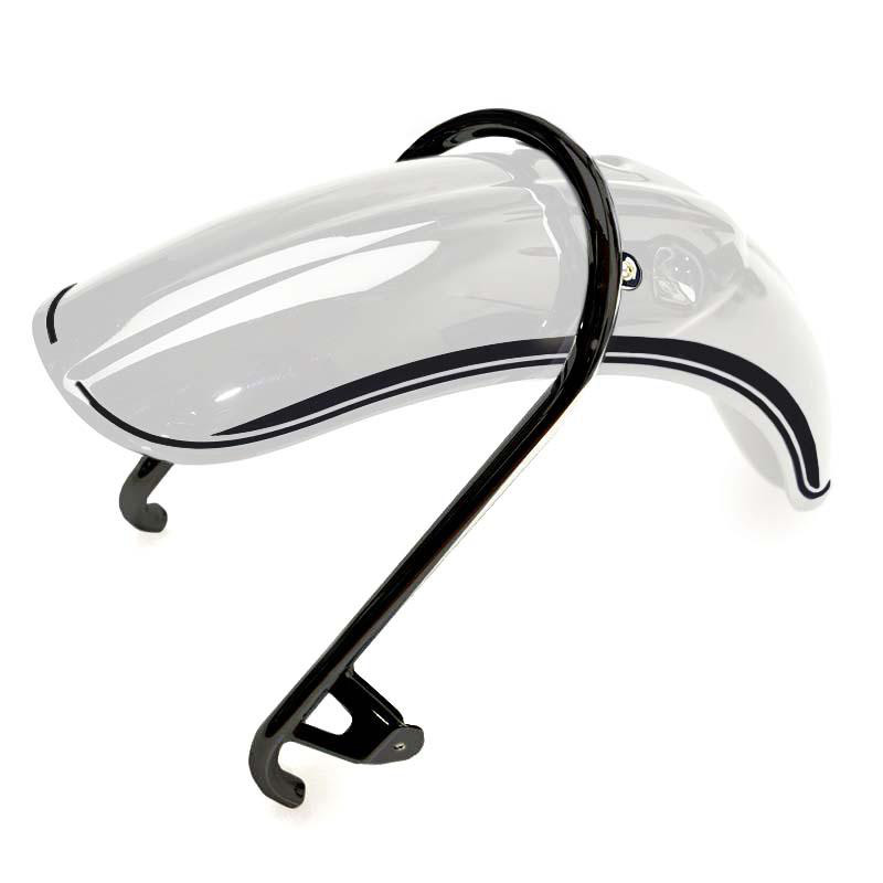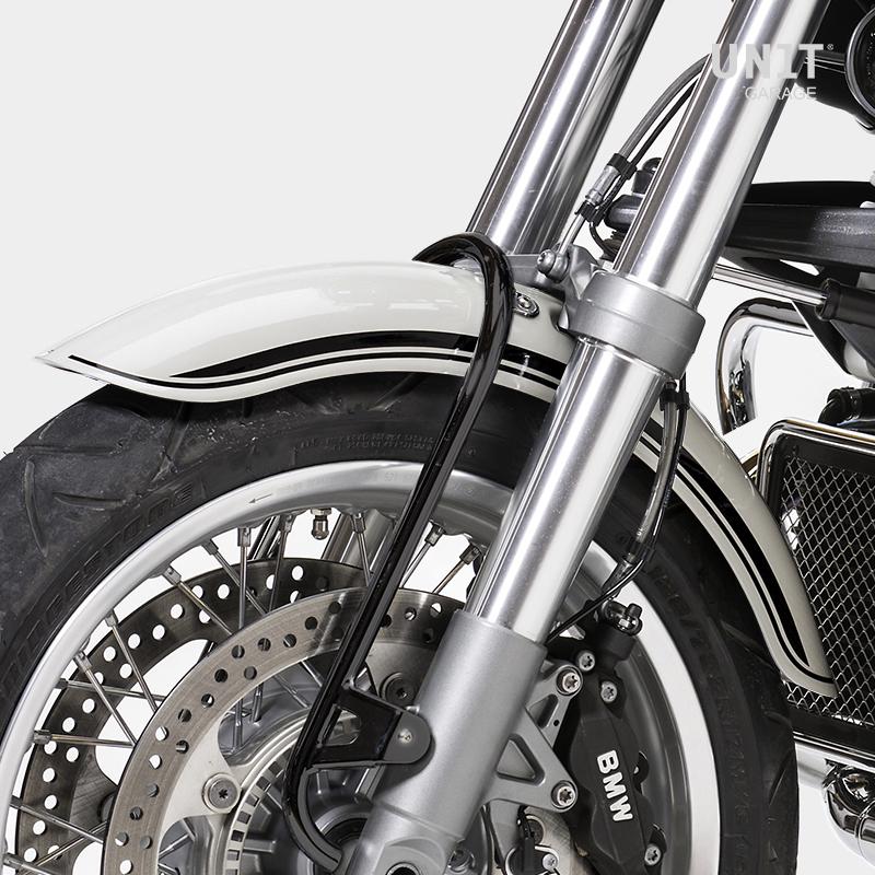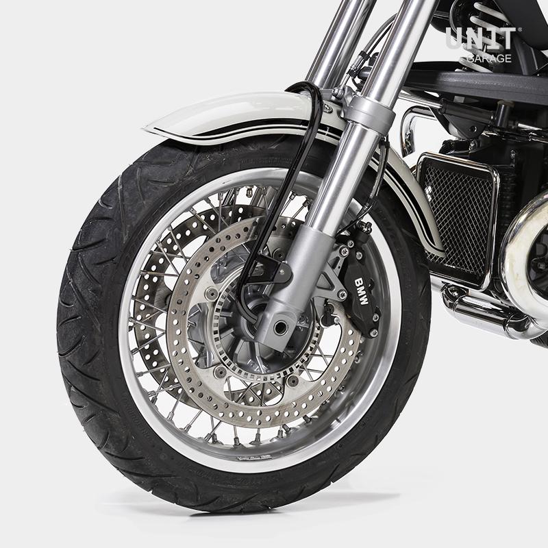 Version finition ALPINEWHITE. Il rappelle les lignes des R 70. Il est muni d'un tube chromé pour la fixation à la fourche.