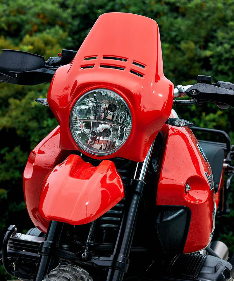 Le garde-boue avant en ABS, est proposé en différents coloris et rappelle les lignes de la pointe GS des années 80.