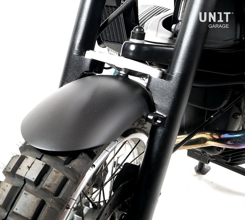 Garde-boue avant en résine spéciale et mat avec renforts en fibre de carbone et fini noir mat.