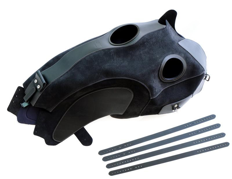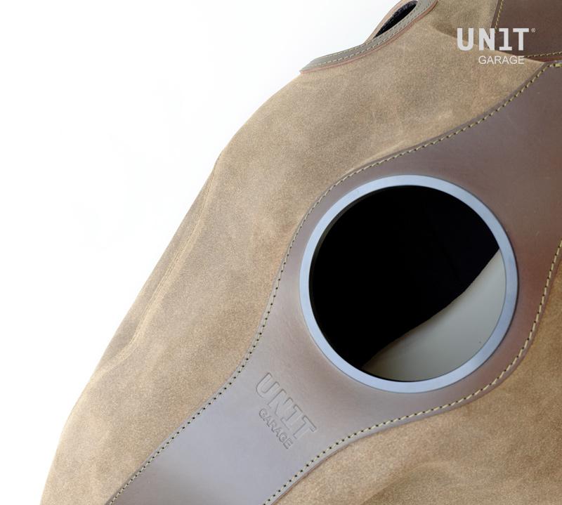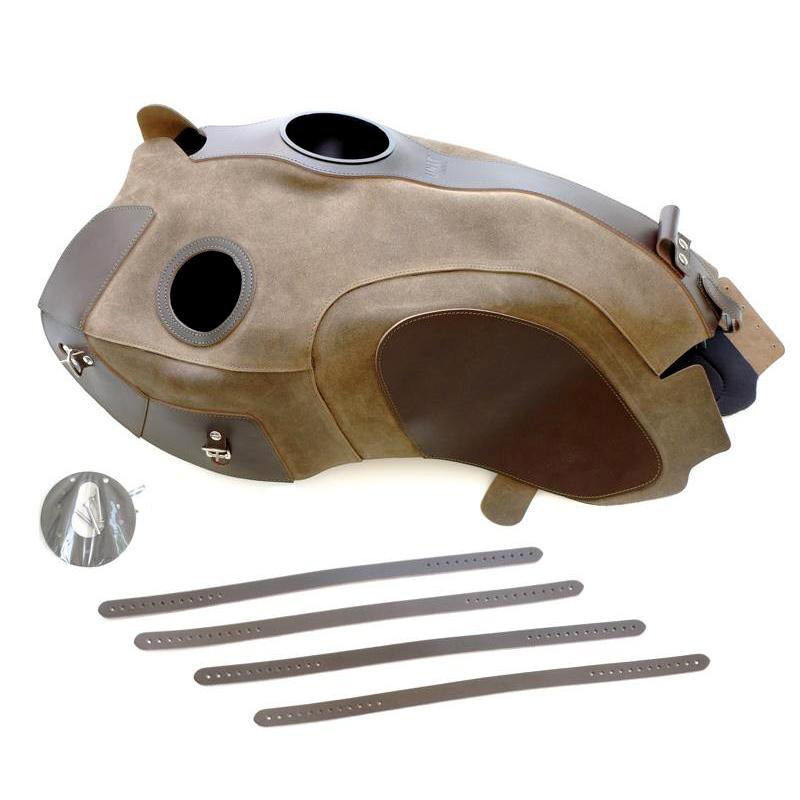Couverture de réservoir faite à la main en Italie dans une croûte de cuir robuste de la plus haute qualité; traité avec de la cire qui le rend résistant à l'eau.