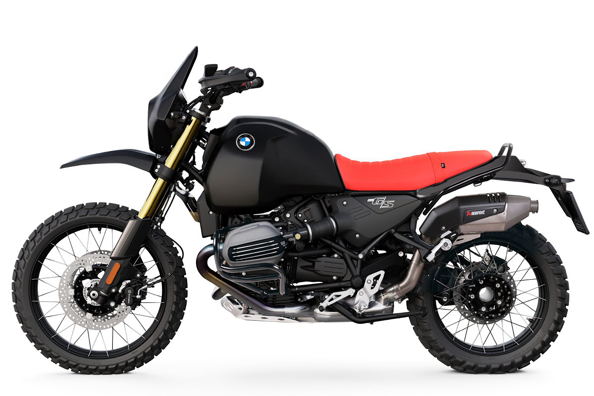 Le partenariat entre Unit Garage et Akrapovič a donné naissance à un système d'échappement alliant la technologie Akrapovič, le design Unit Garage et une esthétique inspirée des motos BMW Dakar des années 1980. Le silencieux, fabriqué artisanalement en alliage de titane haut de gamme avec un revêtement en carbone, ne pèse que 2,1 kg ! Outre sa légèreté, cet échappement offre un gain de puissance et de couple, ainsi qu'une sonorité plus grave et sportive. Compatible avec les fixations d'origine de la moto, son installation est simple et ne nécessite aucune modification ni reprogrammation du calculateur.