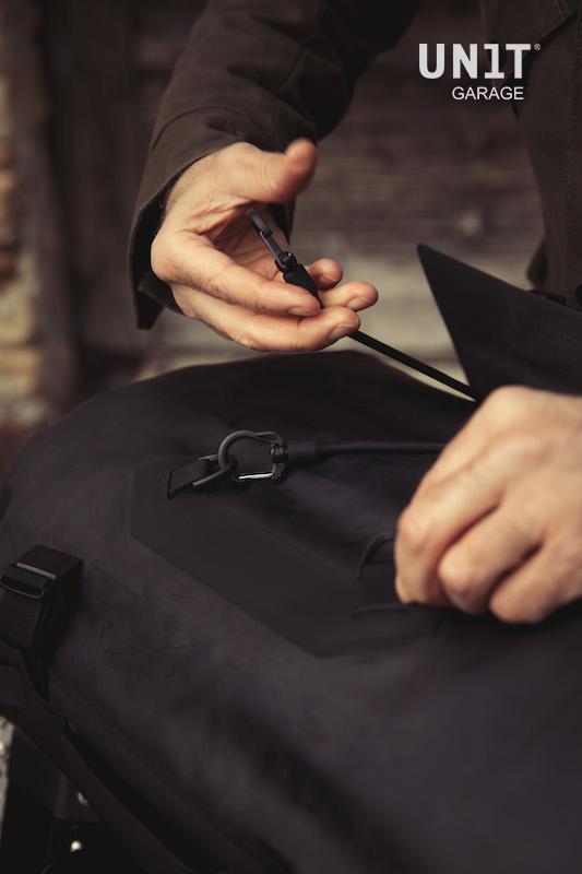 Universel et polyvalent, il peut être fixé sur tout type de moto, il peut être ancré sur n'importe quel porte-bagages, sur des sacs en aluminium ou sur le siège passager. La double ouverture facilite l'accès et la rend symétrique lorsqu'elle est fixée sur le vélo, le rabat supérieur possède deux bandes élastiques à l'intérieur et une poche antidérapante pour ranger rapidement d'autres bagages ou la veste lorsque vous vous arrêtez.