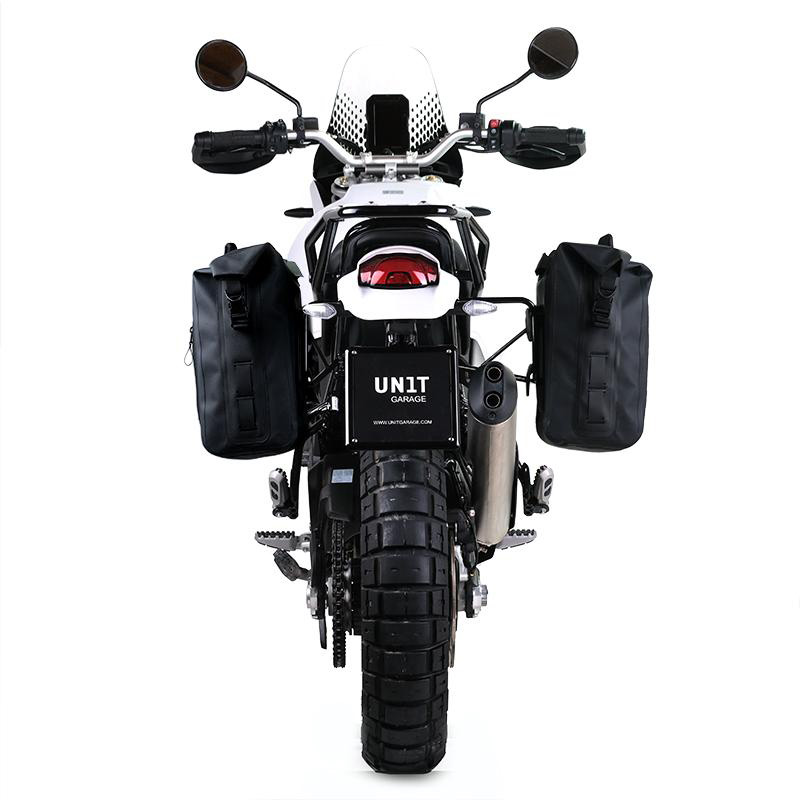 Ducati DesertX, il s'intègre parfaitement au reste de la moto. Prêt à accueillir notre système d'attache rapide, beau et minimal même lorsque le sac n'est pas monté. Il peut être utilisé confortablement avec le passager à bord. Il peut être monté sur la moto en combinaison avec nos accessoires, il n'est pas nécessaire de remplacer ou de modifier quoi que ce soit. Les cadres se montent avec nos barres de toit et peuvent être utilisés confortablement avec le passager à bord.