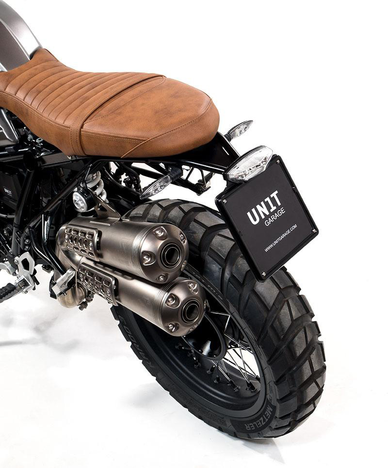 Le plastique arrière nous a dérangés, nous avons voulu recréer une continuité esthétique avec le châssis du passager en tube: le résultat est fantastique, une fois monté, il en est un avec le reste de la moto. Fabriqué en tube d'acier enduit de poudre époxy noire avec porte-plaque en aluminium avec boîtier prêt à recevoir le phare d'origine. Il est fixé au cadre très simplement et vous permet de changer considérablement le caractère et le style de la moto dans le dos en raccourcissant et en soulevant la plaque d'immatriculation et le phare. Complet avec des supports pour les flèches d'origine ou de rechange (flèches non incluses) et tout le nécessaire pour l'assemblage, il est compatible avec nos supports de sac, poignée de passager ou porte-bagages arrière.