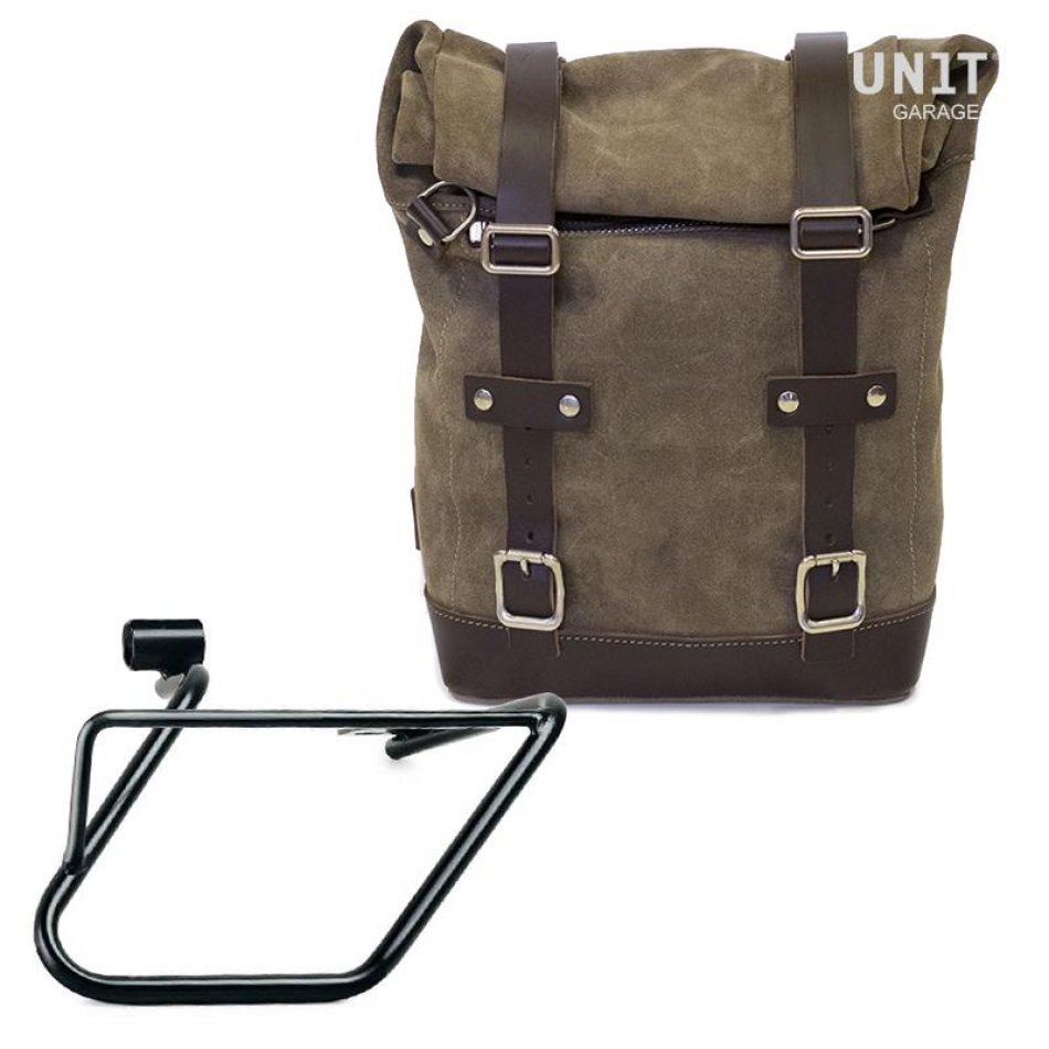 Sacoche latérale en toile 10L-14L et sacoche latérale Scram en cuir fendu 22L-30L + cadre gauche