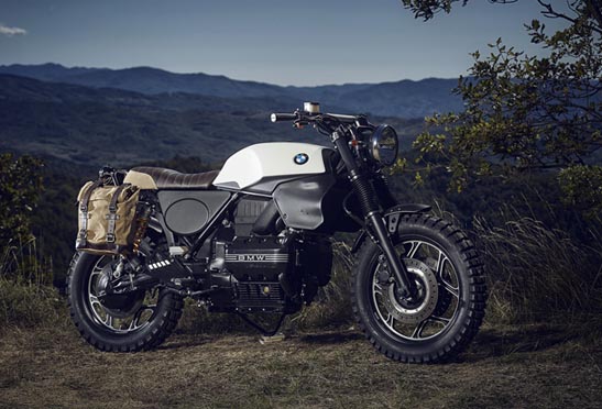 Le résultat est fantastique, la vue en direct est encore meilleure que sur la photo ... propre simple et avec des accessoires dédiés: sac en toile cirée et cuir avec cadre de fixation, Ohlins convenablement calibrés et de longueur accrue, embout d'échappement en titane tout fait ad hoc pour le K75 et le K100.
