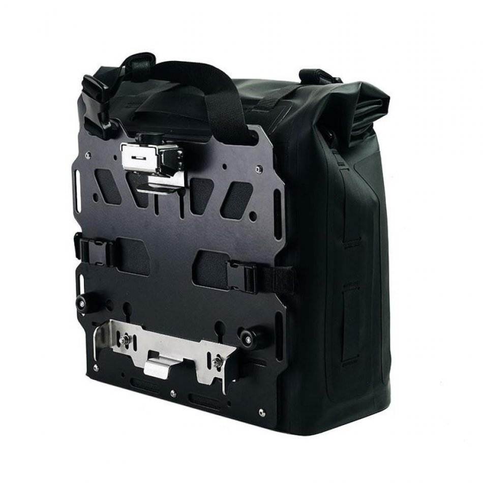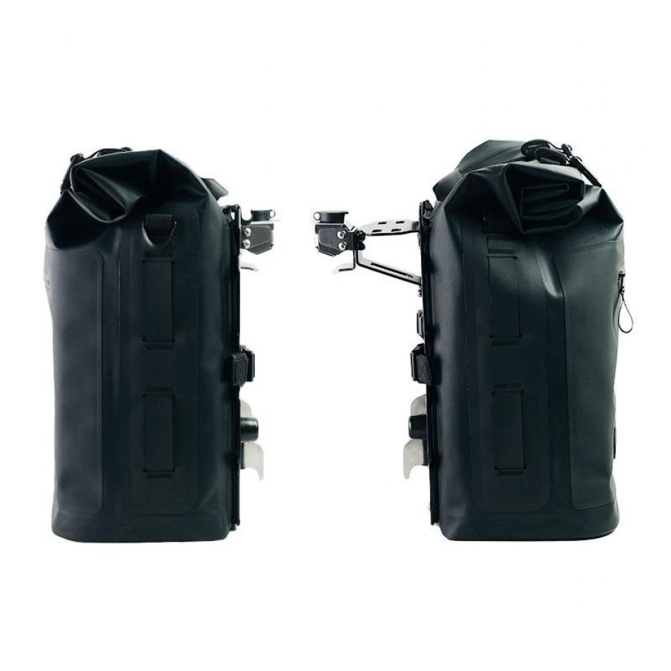 D'une capacité de 35 à 45 L, il se monte en quelques secondes sur les cadres de sacoches classiques en aluminium Atlas sans adaptateur supplémentaire ; tout est inclus. Il s'adapte facilement à la plupart des cadres tubulaires de 18 mm de diamètre du marché, comme les cadres d'origine BMW. Il est doté de poches zippées étanches à l'intérieur comme à l'extérieur et de boucles magnétiques pour une ouverture rapide.