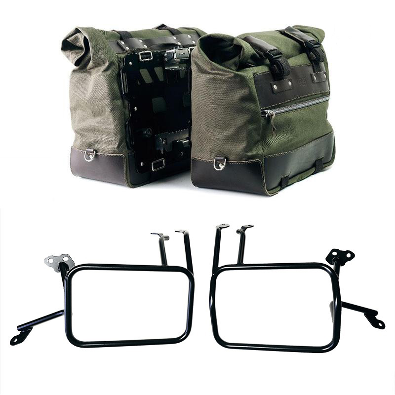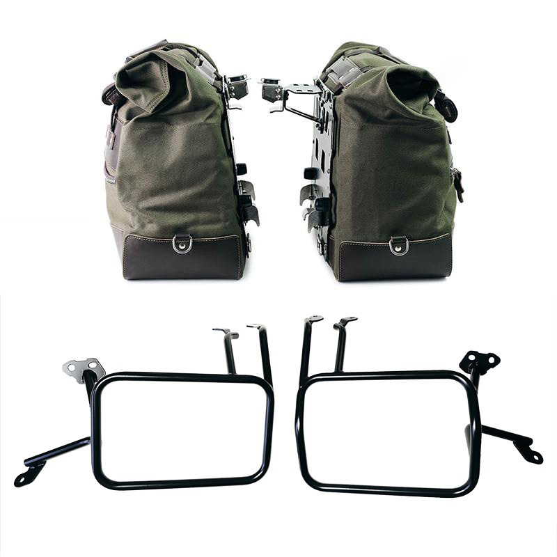 Paire de sacoches latérales Cult en coton imperméable avec plaques arrière en aluminium + attache rapide et serrure en acier inoxydable