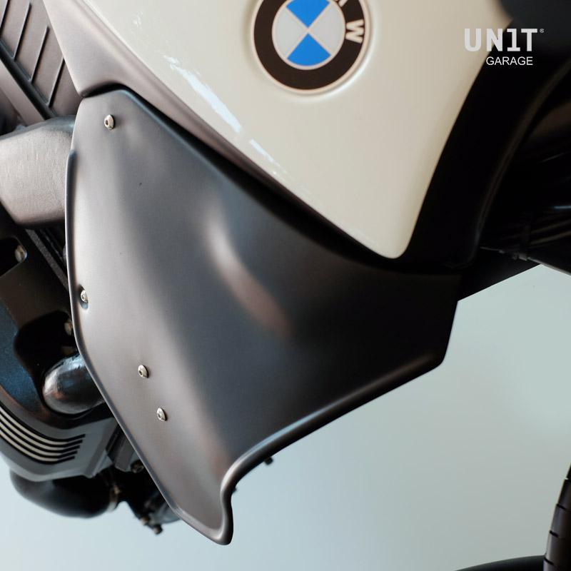 Panneaux latéraux gauche et droit du réservoir en résine spéciale et mat noir mat.