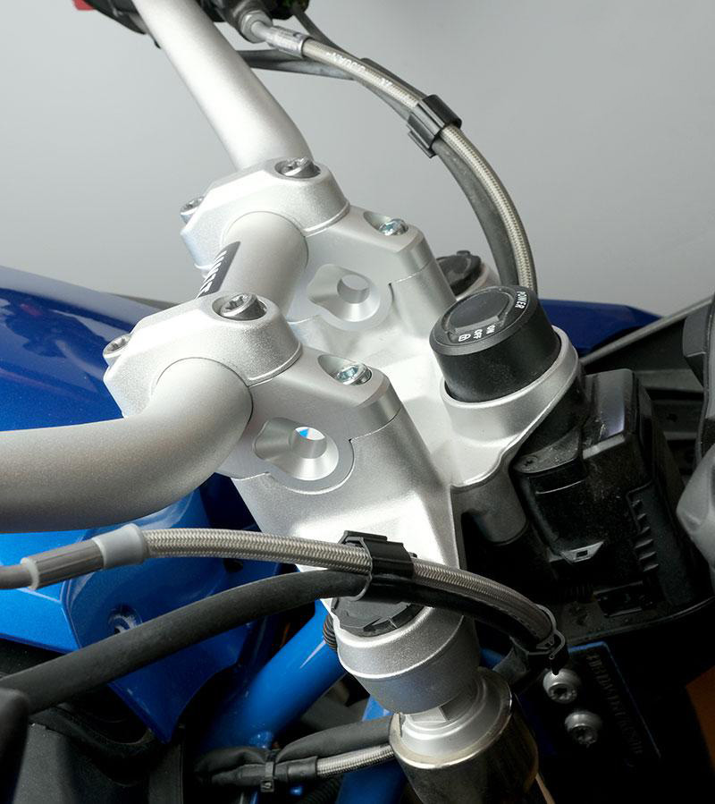 Faciles à installer sur le boîtier d'origine, ils modifient la position de conduite de votre Gs en la relevant de 30 mm et en déplaçant le guidon de 22 mm en arrière. Très vite, vous aurez une position de conduite plus détendue, droite et adaptée aux longues distances. Il n'est pas nécessaire de remplacer ou de rallonger un câble, il est fourni avec les vis de fixation.