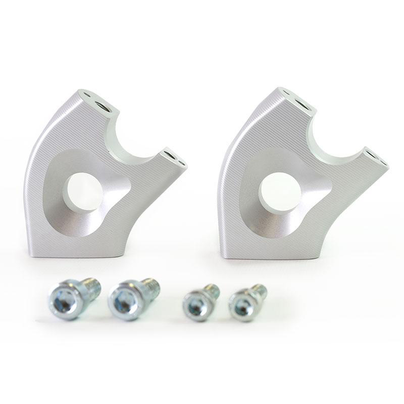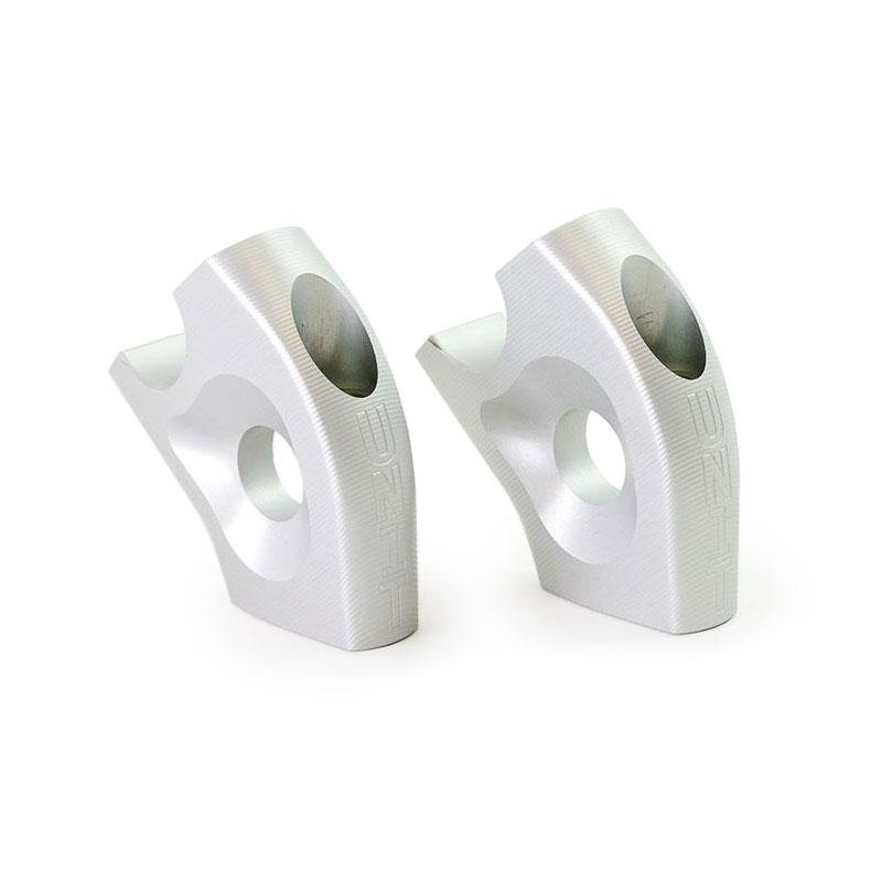 Si vous voulez éliminer la sensation de distance par rapport à la direction typique de la nineT, vous aurez besoin de ces élévateurs! Paire de rehausseurs de guidon spéciaux conçus et fabriqués par CNC, usinés en alliage d'aluminium massif avec finition argentée. Facile à monter sur le boîtier d'origine, ils changent la position de conduite de la vôtre nineT soulevant le guidon de 10 mm et reculant vers le pilote de 30 mm. Très rapidement, vous aurez une position de conduite plus détendue et plus droite, adaptée aux longues distances. Il n'est pas nécessaire de remplacer ou d'étendre les câbles, ils sont fournis complets avec des vis pour le montage. Il s'adapte sur le guidon d'origine et sur tous nos guidons sauf le guidon Comfort.
