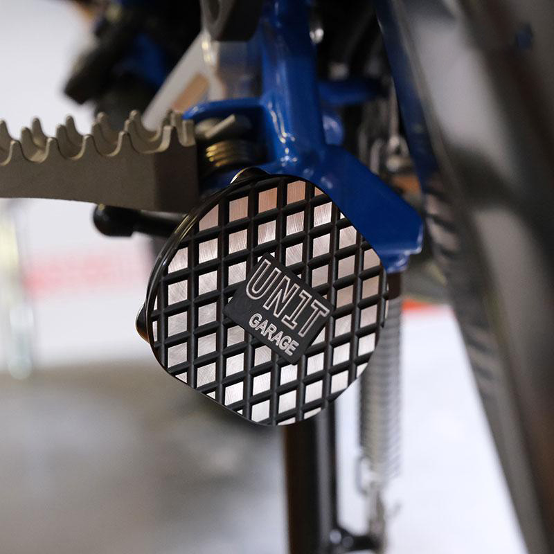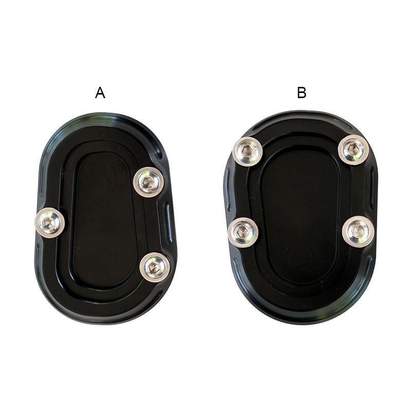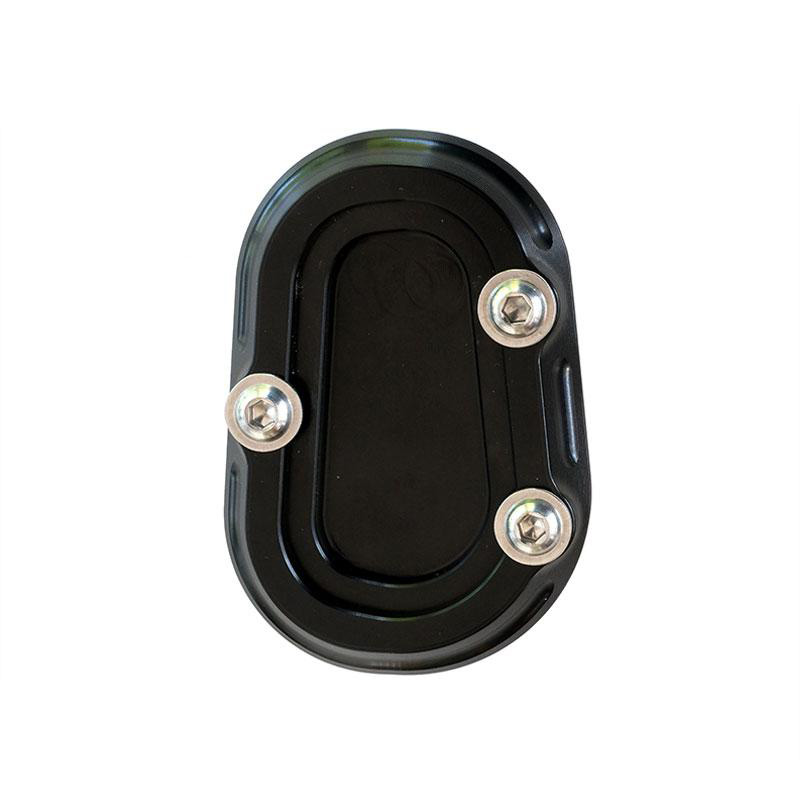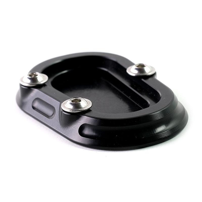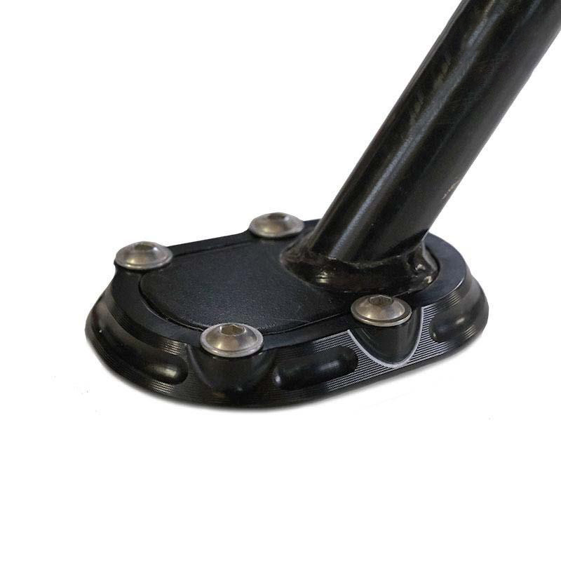 La surface de support du chevalet d'origine est assez pauvre. Sur un fond mou ou sur un asphalte chaud, cette plaque Ergal en solide permet un support sécurisé. Antioxydant anodisé noir avec gravure et logo sur les dents. Monte en quelques minutes.