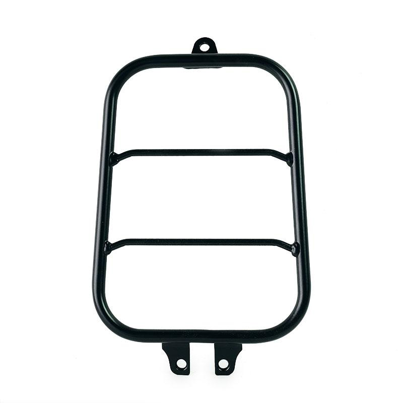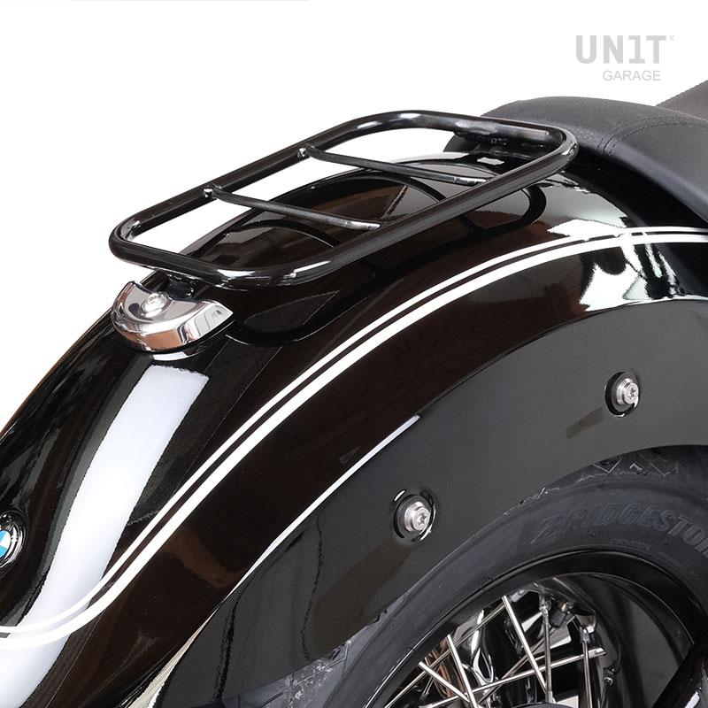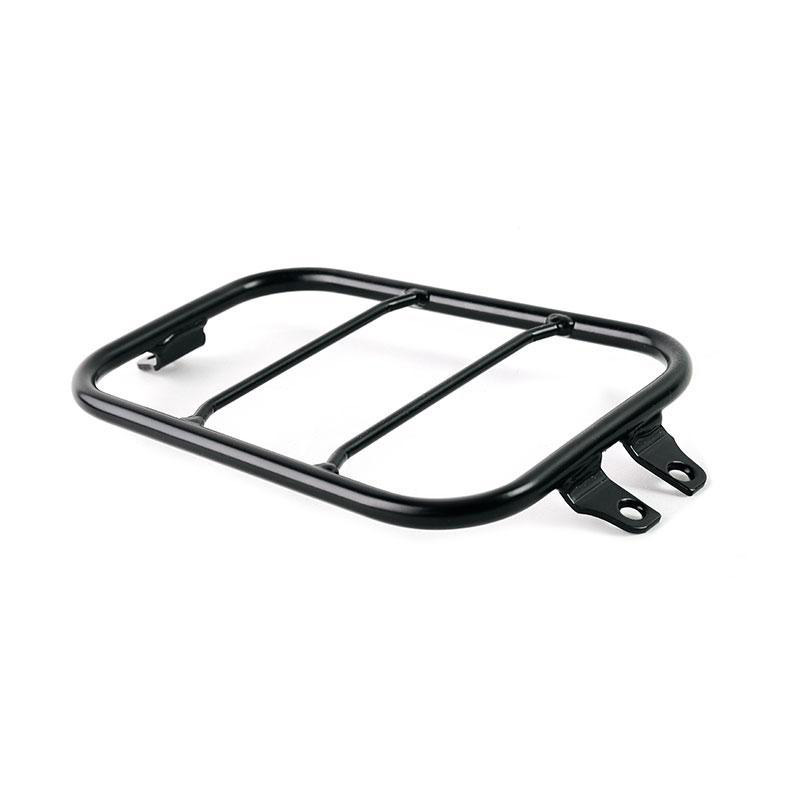 Porte-bagages en acier finition poudre époxy noir mat, vis de fixation.