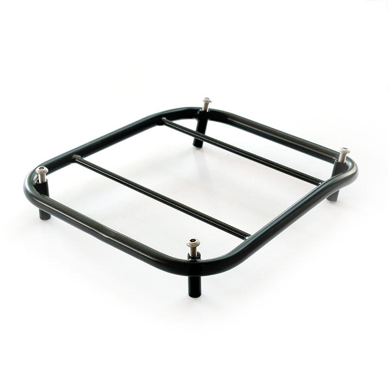 Porte-bagages en acier, fini poudre époxy noir mat, vis de fixation.
