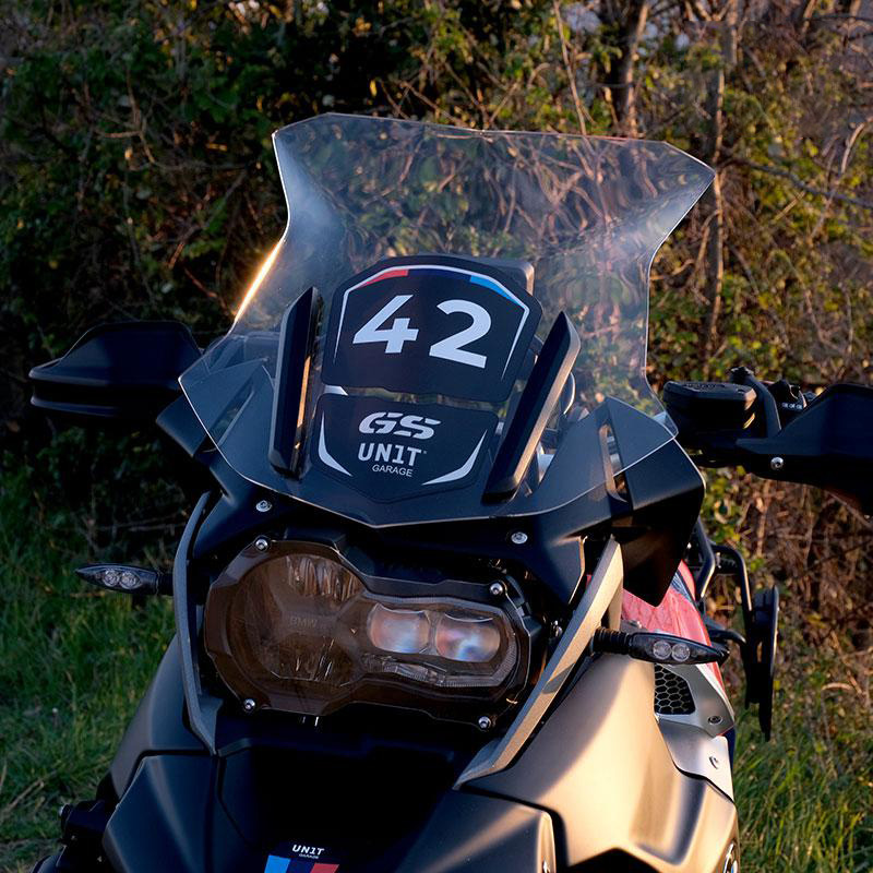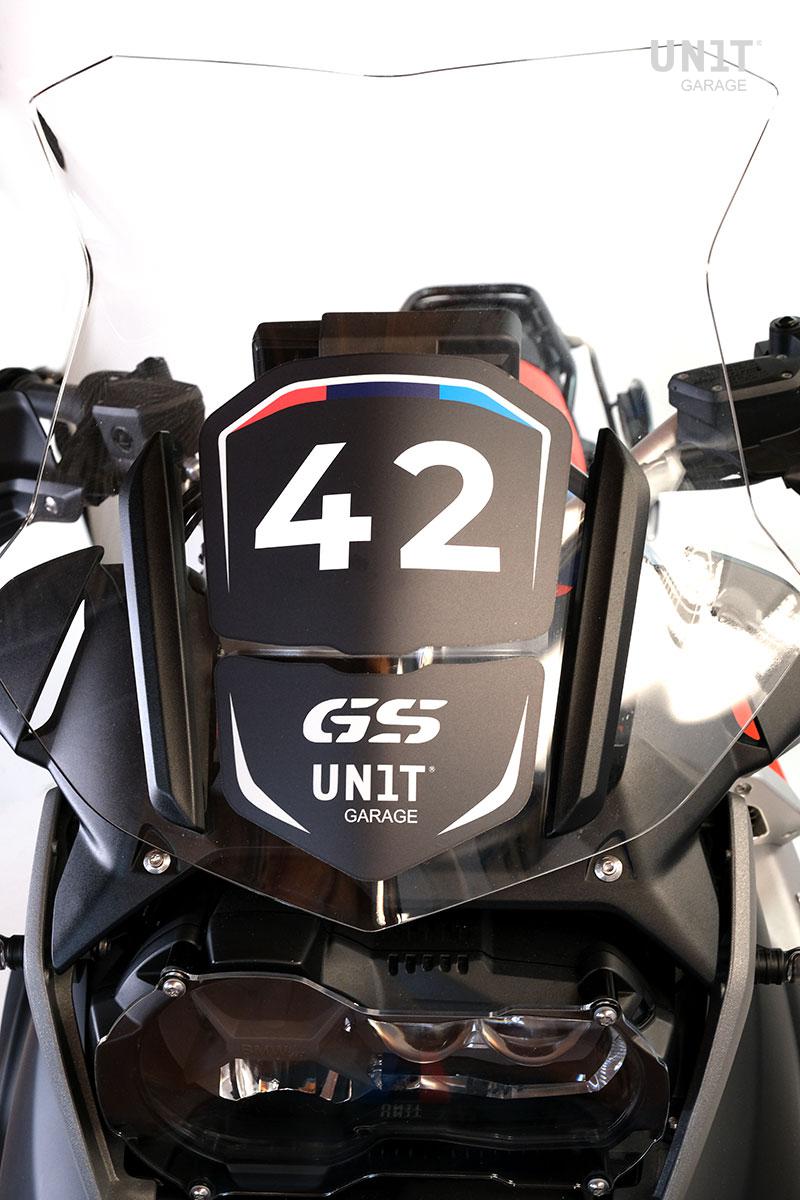 Adhésifs protégés par un film spécial résistant aux UV; étant pré-espacés, ils sont également partiellement applicables, par exemple uniquement la partie inférieure avec le logo ou la partie supérieure avec le porte-numéro.