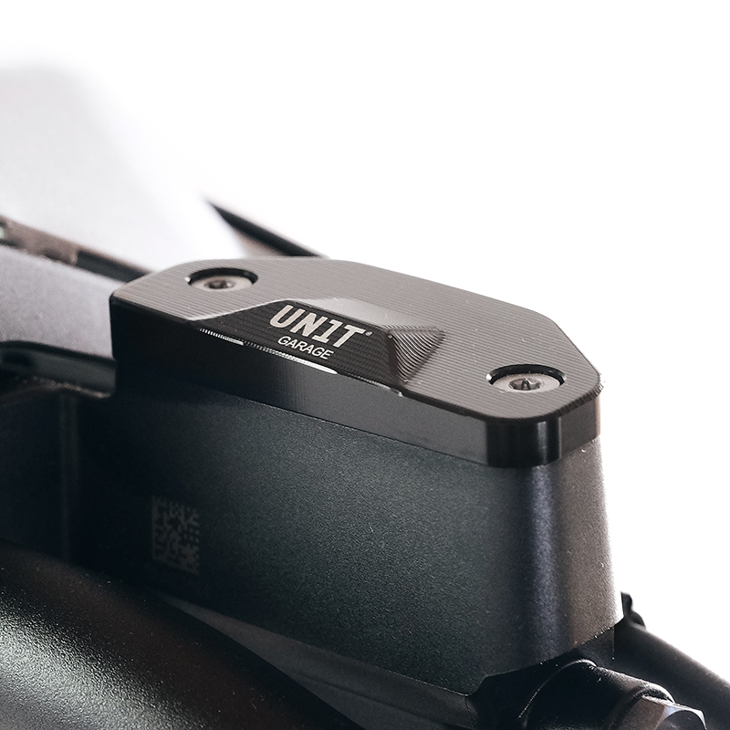 Paire de bouchons de réservoir d'huile de frein et d'embrayage usinés à partir de CNC massif. Ils se montent sans aucune modification et remplacent ceux d'origine, les rendant plus protecteurs et élégants.