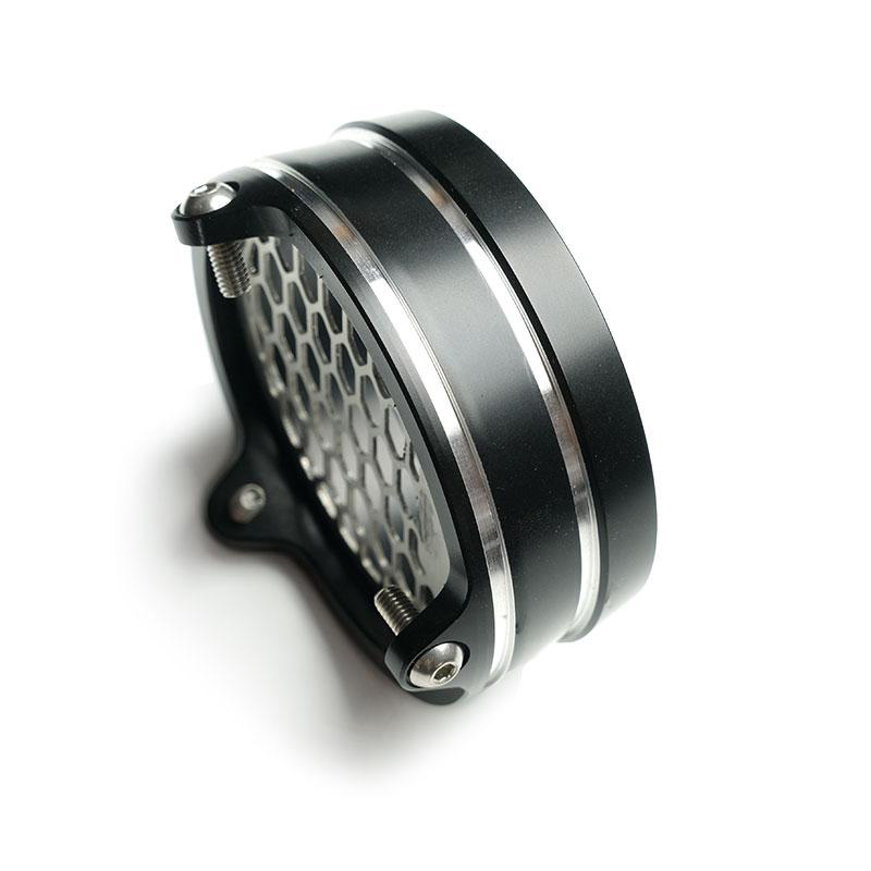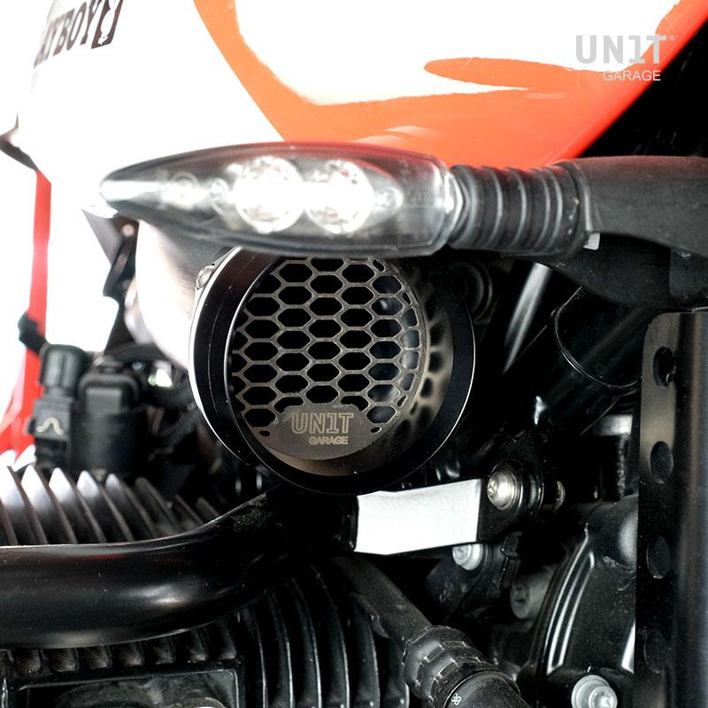 Corne d'aspiration en alliage d'aluminium de haute qualité pour l'admission d'air du nineT. Il peut être monté aussi bien sur la moto avec le carter d'origine que sur nos kits. Il est livré avec une grille en acier inoxydable et des vis de montage, il peut être assemblé en quelques minutes et il n'est pas nécessaire de percer ou d'altérer quoi que ce soit.