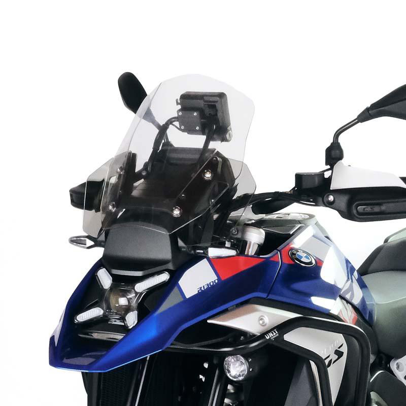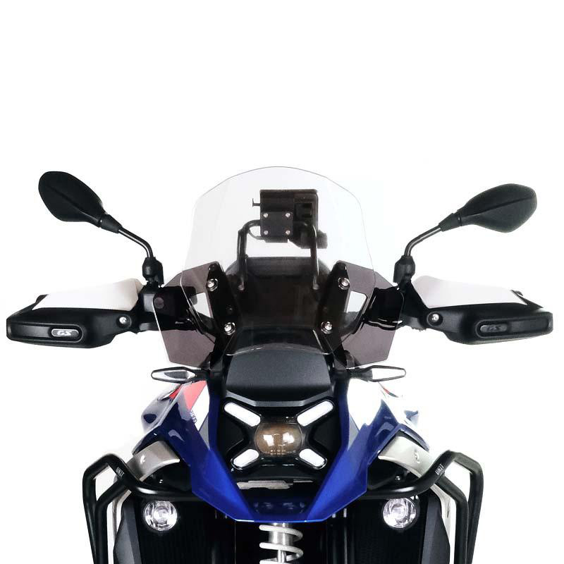 Paire de déflecteurs latéraux, Grand modèle (dimensions supérieures à celles d'origine). Ils peuvent être assemblés rapidement sans aucune modification, tout le nécessaire est fourni dans le kit de montage. Ils ne modifient pas le design de la moto mais sont véritablement très efficaces, offrant une grande protection supplémentaire.