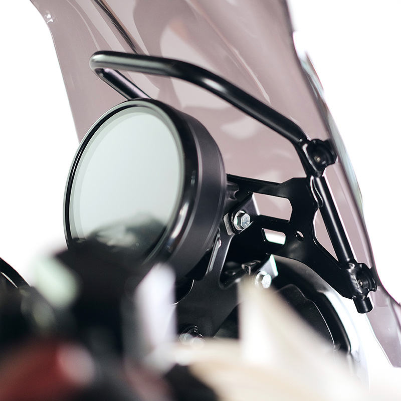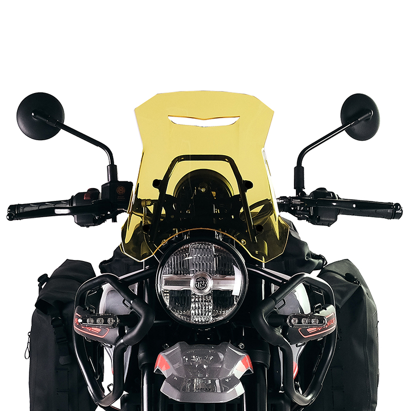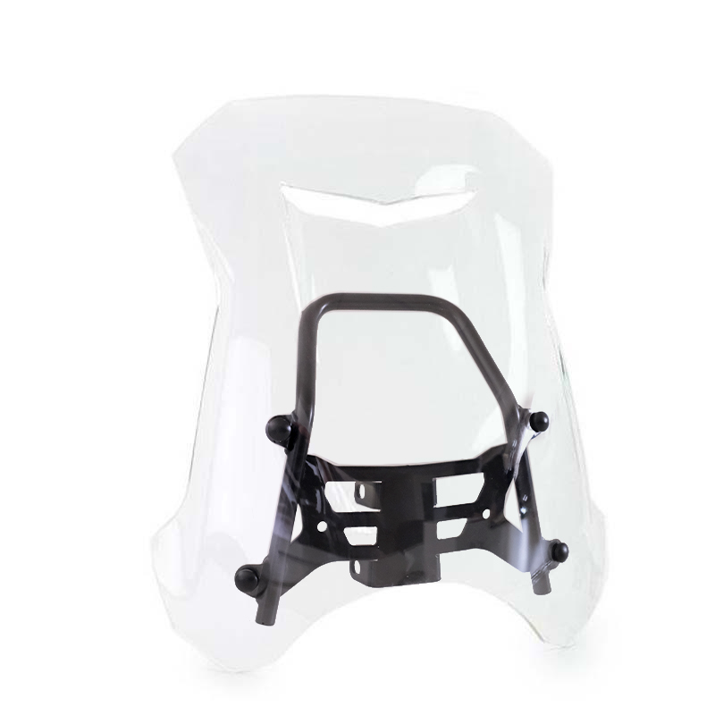 Doté d'un nouveau support et de nouvelles visseries, il complète parfaitement la partie avant. Fabriqué en PMMA (acrylique) de 4 mm d'épaisseur, il est facile à installer et offre une excellente protection aérodynamique. L'aération avant élimine les turbulences et le tube de support sert également de support pour GPS ou téléphone.