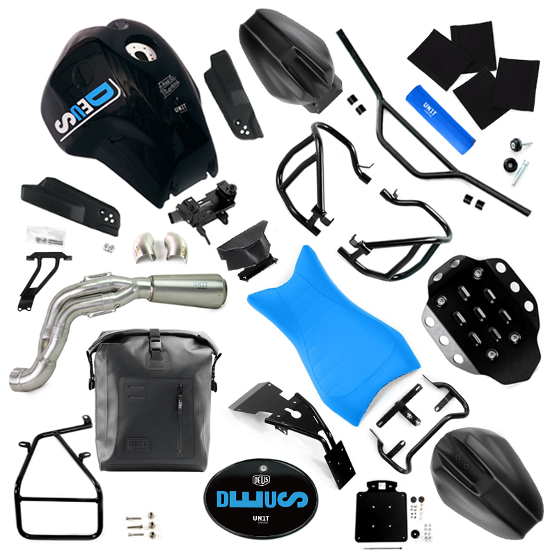 Deus Ex Machina et Unit Garage connaissent bien le tout-terrain, le kit « Enduro » est donc un produit qui ne pouvait manquer dans cette collaboration. Pour cette configuration dédiée aux amateurs de boutons, Deus a sélectionné une gamme de produits qui donnent à la nineT un look épuré et agressif, choisissant de célébrer la « machine » avec une livrée emblématique qui rend hommage à l'histoire tout-terrain de l'hélice.