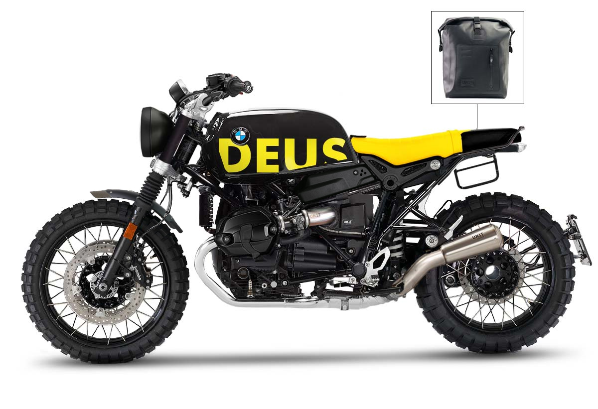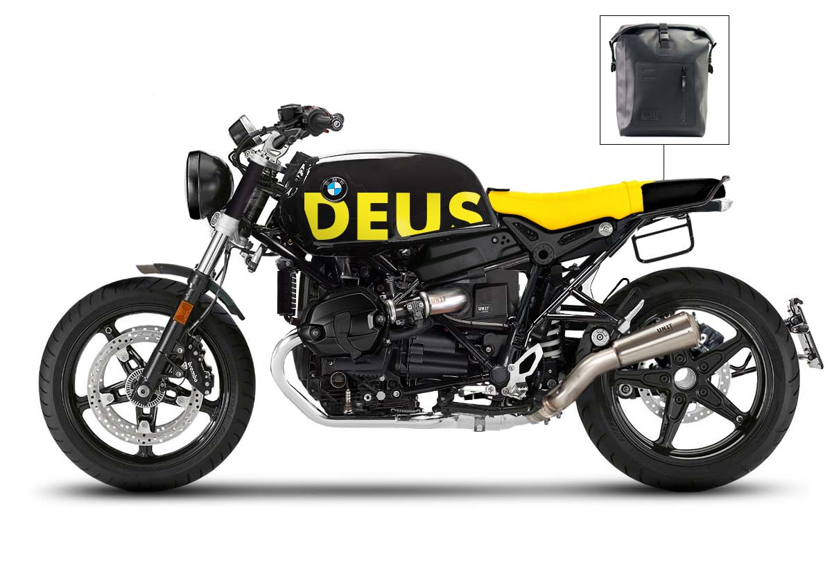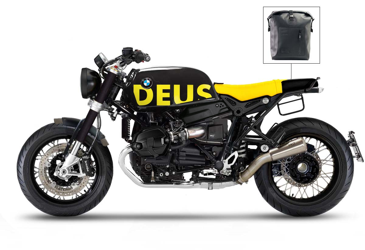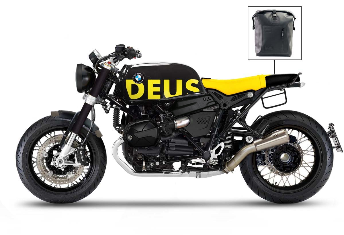 Il se monte sur le côté droit de la moto. Conçu pour la série NineT, il s'intègre parfaitement au reste du vélo. Prêt à accueillir notre système d'attache rapide, beau et minimal même lorsque le sac n'est pas monté.