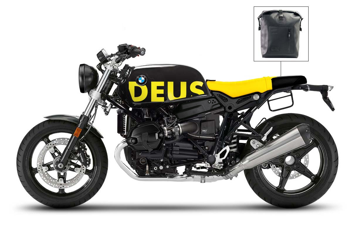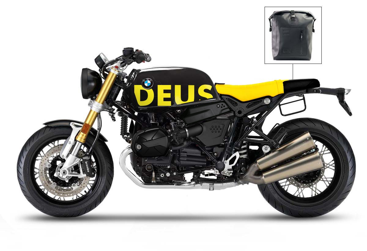 Il se monte sur le côté droit de la moto. Conçu pour la série NineT, il s'intègre parfaitement au reste du vélo. Prêt à accueillir notre système d'attache rapide, beau et minimal même lorsque le sac n'est pas monté.