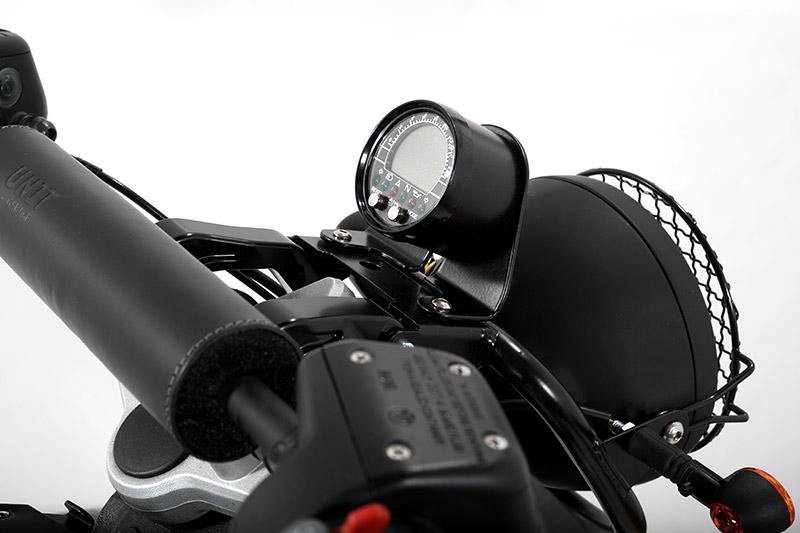 Composé de tout le nécessaire pour le montage, y compris le support de fixation à nos cadres de phares et l'anneau pour l'instrument. Ordinateur avec corps et lunette noire Mesures : diamètre 73 mm - hauteur 41 mm. Compte-tours et indicateur de vitesse jusqu'à 300 km/h ; compteurs kilométriques partiels et totaux, temps, vitesse maximale, temps de trajet partiel et total ; Affichage LCD avec deux lignes numériques et un graphique à barres analogique pour le tachymètre ; Écran LCD avec fond LED bleu ; Stockage du kilométrage et de la distance totale ; Affichage de l'heure même lorsque l'appareil est éteint ; Réglage de circonférence de roue adaptable à tous les types de roues (largeur 1-3999 mm); Unité de mesure de la vitesse en miles ou en kilomètres ; Coquille imperméable; Indicateurs de direction, feux, pression d'huile, indicateur de point mort et défauts moteur ; Jauge de carburant graphique à barres. Inclus dans le package, vous trouverez un capteur de vitesse avec aimant ; Kit de montage et support tout en aluminium inoxydable ; Câblage avec connexions en étain étanches ; Instructions de montage et manuel.
