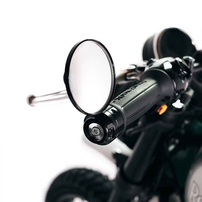 Rétroviseur en aluminium anodisé noir spécialement conçu pour la Royal Enfield.