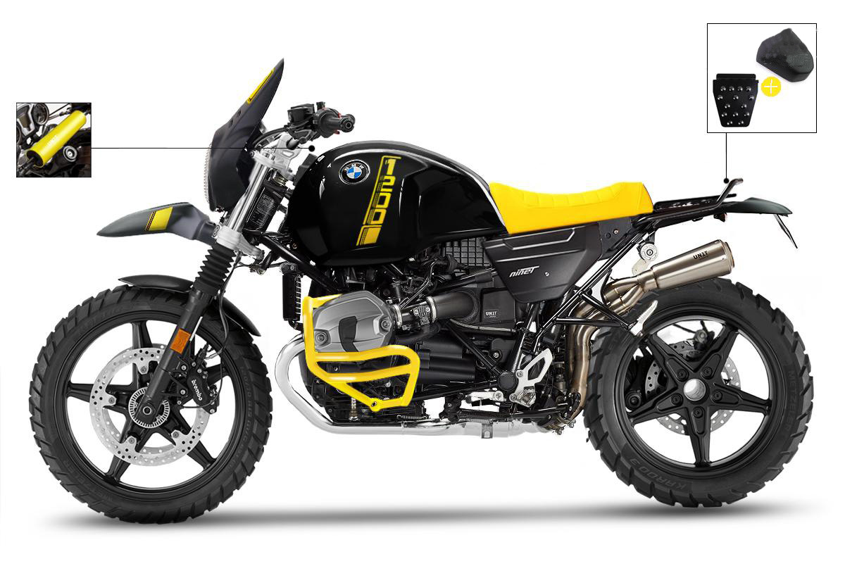 Le kit NineT PARIS DAKAR Yellow 40th avec accessoires fera de votre nineT une icône.