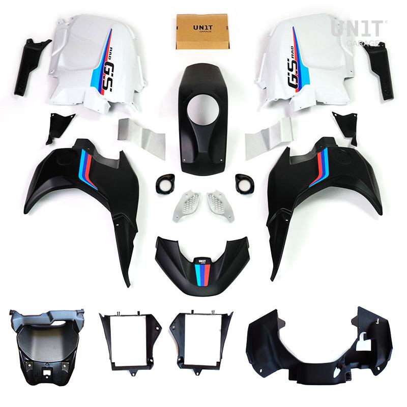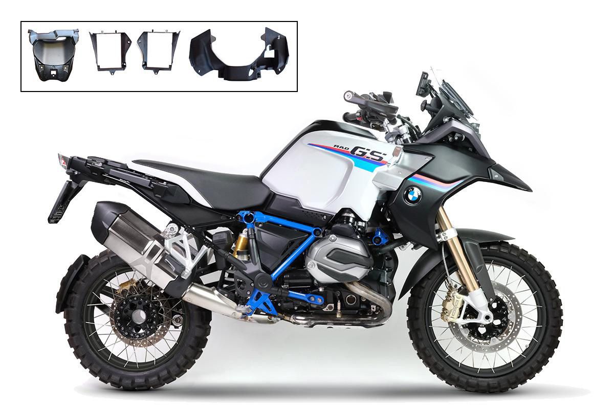 Redessine tout l'avant du vélo en le rendant plus étroit et effilé. Sur les côtés se trouve le boîtier du logo d'origine R1200 GS qui peut être retiré de votre vélo. Deux autocollants prédécoupés sont fournis pour remplacer ceux des logos que vous allez démonter.