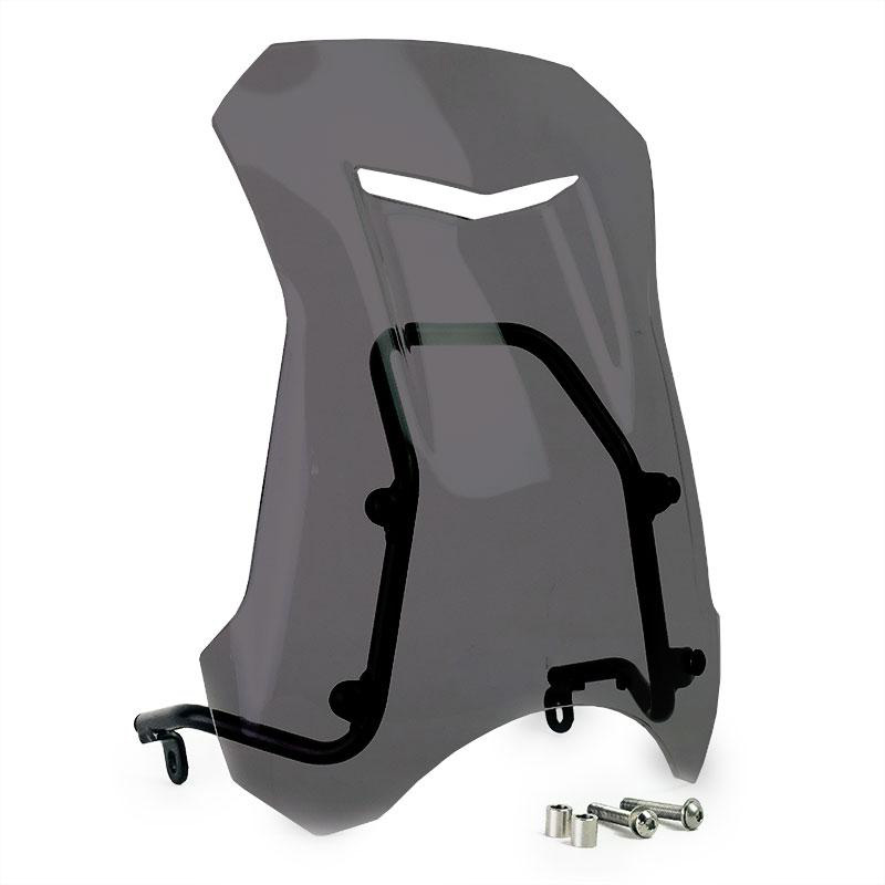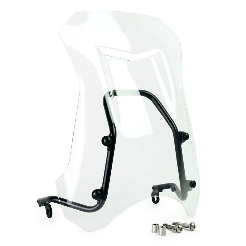 Complet avec supports et vis, il est parfaitement en harmonie avec les lignes de la façade. Fabriqué en PMMA (acrylique) de 4 mm d'épaisseur. Il est très facile à monter et offre une excellente protection aérodynamique. La grille avant réduit les turbulences et le tube de support sert également de support GPS.