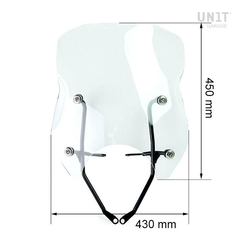 Complet avec supports et vis, il est parfaitement en harmonie avec les lignes de la façade. Fabriqué en PMMA (acrylique) de 4 mm d'épaisseur. Il se monte très facilement et offre une excellente protection aérodynamique.