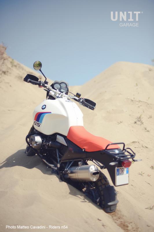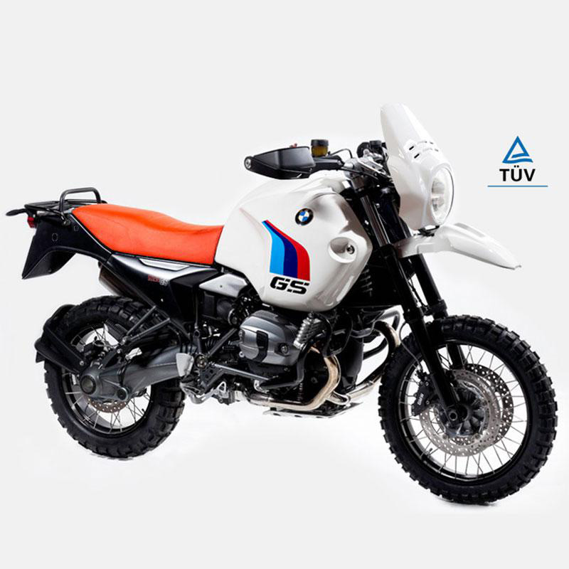 Le KIT R120 G / S marque un retour aux origines du G / S tout en conservant le confort et la maniabilité de votre vélo. Les pièces du kit de remplacement pèsent 6,4 kg de moins que celles d'origine et quatre proviennent de composants qui sur la GS standard se trouvent devant le guidon. C'est pourquoi le kittata GS est plus maniable que le modèle de production, aussi bien en ville qu'en mixte. Après environ 4 heures d'assemblage du KIT R120 G / S, vous aurez révolutionné le look de votre vélo en le rendant unique, sans rien changer des pièces d'origine. Le kit est compatible avec tous les modèles R1200 GS de 2004 à 2012. A tout moment vous pourrez restaurer votre moto dans sa configuration d'origine. Naturellement, en plus du KIT de base R120 G / S, vous aurez la possibilité de mettre en œuvre la R120 G / S avec d'autres accessoires visibles dans SPECIAL PARTS. La moto en configuration R120 G / S peut être équipée de valises originales en aluminium ADV avec cadre en métal, ou en achetant nos cadres de valise code 1220, vous pouvez monter les valises en plastique Vario d'origine classiques (voir configurateur). Equipé de pneus Tkc ou Karoo, il ne trouvera pas d'obstacles même hors route, aussi parce que les précieuses pièces d'origine sont en sécurité dans votre garage. Personnalisez-le avec le configurateur et jugez par vous-même. La R120 G / S devient une réplique fantastique de la GS des années 80 ou un brouilleur élégant selon vos goûts.