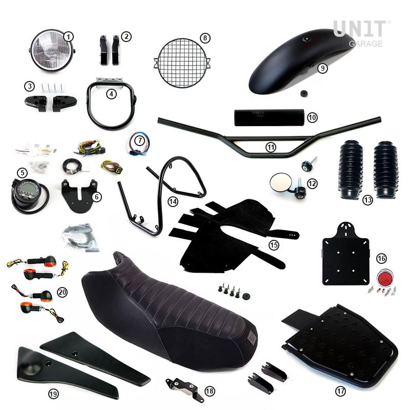 NB : Pour les modèles équipés du double guidon d'origine, notre Guidon (code : 1613Low) est également nécessaire pour le montage et l'utilisation de la moto.