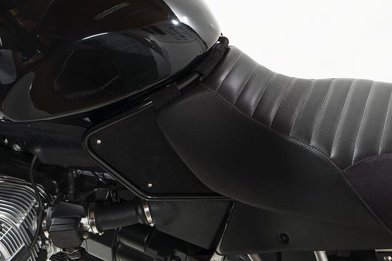 Le réservoir des R850R et R1100R est découpé dans la partie arrière pour loger la selle d'origine. En montant une selle plus classique, il reste une zone vide entre la selle et le réservoir, nous avons résolu ce problème avec : tube de protection pour les côtés du réservoir en acier avec une finition poudre époxy noire épaisse et finition croûte de cuir. En plus de réparer la zone du réservoir près des genoux du pilote, il donne un look plus musclé à votre R en s'intégrant parfaitement aux lignes de votre vélo. Livré complet avec tout le nécessaire pour l'installation.