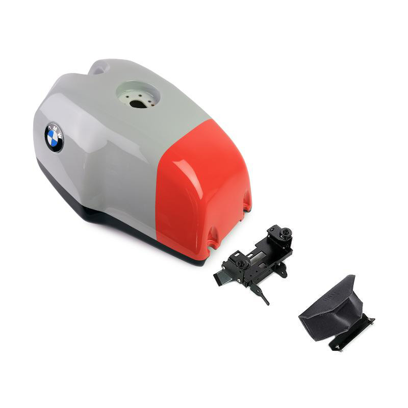 Réservoir nineT/7 : Le bouchon du réservoir et la pompe à essence restent ceux d'origine de votre moto, le feu de réserve fonctionnera toujours, vous n'aurez rien à modifier, le kit est totalement réversible. Le réservoir en nylon est fourni peint avec des autocollants sous transparent. (dans la version blanche, ils doivent être achetés séparément) Le filtre à charbon actif (bidon) d'origine reste celui d'origine. Tous les supports de fixation du réservoir sont fournis dans le kit. La capacité est de 18,5 litres, le réservoir de garage nineT/7 Unit pèse 2 kg de moins que celui d'origine.