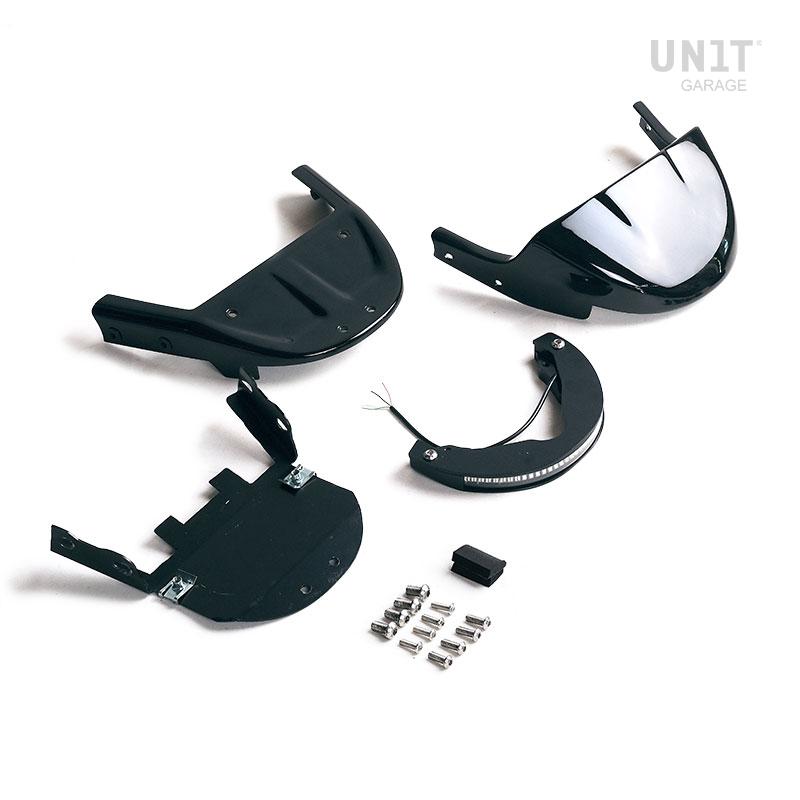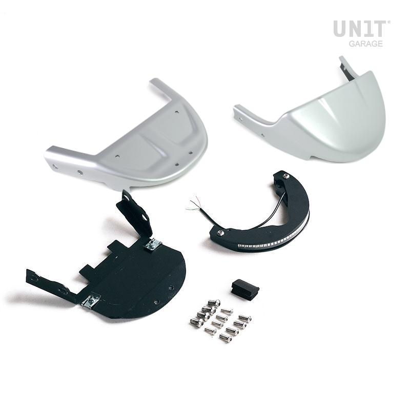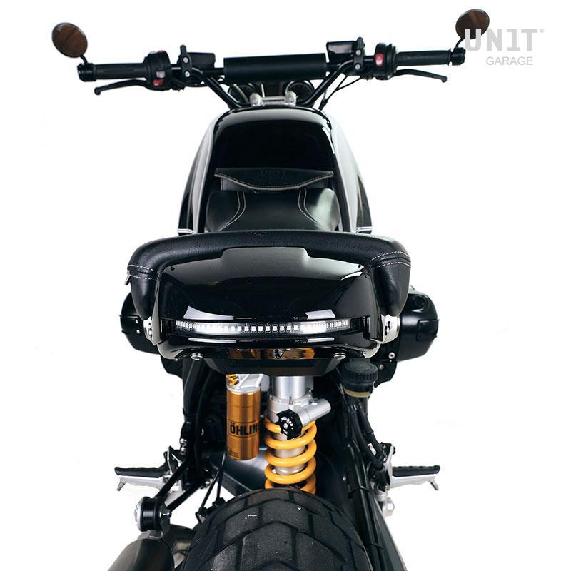 Lorsque BMW a conçu la nineT Roadster, elle a conçu la partie arrière pour qu'elle soit entièrement amovible, non seulement le cadre passager mais également le siège passager. Vous pouvez désormais transformer votre nineT Roarster en un véritable Roadster ! Il reflète les lignes de la moto, fantastique aussi bien avec nos réservoirs qu'avec celui d'origine. Constitué de deux demi-coques en ABS avec une structure interne en acier peint avec des poudres époxy. Fourni avec un insert en aluminium CNC, anodisé noir, il remplace les clignotants et le phare d'origine. Il est fourni déjà câblé et prêt à être assemblé avec des fiches compatibles avec le système électrique OEM. Peut être monté sur les modèles nineT Roadster de n’importe quelle année de production. (EURO 3-4-5) La bande LED intégrée est éclairée en rouge, qui augmente en intensité lorsque les freins sont activés (feu stop) et change de couleur en orange aux extrémités lorsque les clignotants sont activés (voir vidéo). Complet avec tout le nécessaire pour le montage et les instructions. Livré peint ou neutre (peignez-le aux couleurs de votre moto !) Parfait s'il est monté en combinaison avec nos accessoires.