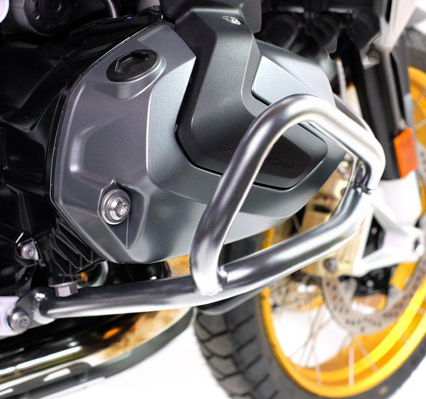 Très élégants et enveloppants, ils sont pivotés en trois points sur le cadre du vélo pour protéger les précieuses têtes de votre boxer refroidi à l'eau. Ils s'intègrent parfaitement au cadre et sont très protecteurs en cas de chute. Fabriqué en acier inoxydable avec une finition identique à celle d'origine. Faciles à assembler, ils sont livrés complets avec vis et notice. La plupart des travaux de maintenance peuvent être effectués sans retirer la barre. Compatibilité du modèle: R1200 GS - R1200 GS ADV - R1250 GS - R1250 GS ADV - R1200R - R1250R