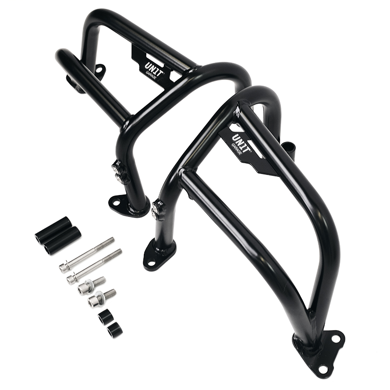 Fabriqué en acier avec tube de 25 mm, épaisseur 2 mm, traité avec des peintures en poudre à haute résistance. La plupart des travaux d’entretien peuvent être effectués sans démonter la barre. Très belles et élégantes, elles définissent parfaitement les lignes de la moto. Ils sont livrés avec tout ce dont vous avez besoin, y compris les instructions de montage. Intégrés sur les barres, vous trouverez également des inserts soudés filetés M6 pour la fixation de phares supplémentaires (espacement des trous 20 mm)