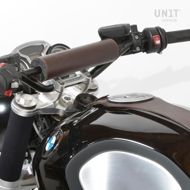 Pare-chocs en cuir marron, il se monte très facilement sur n'importe quelle traverse de guidon et protège le visage en cas de chute.