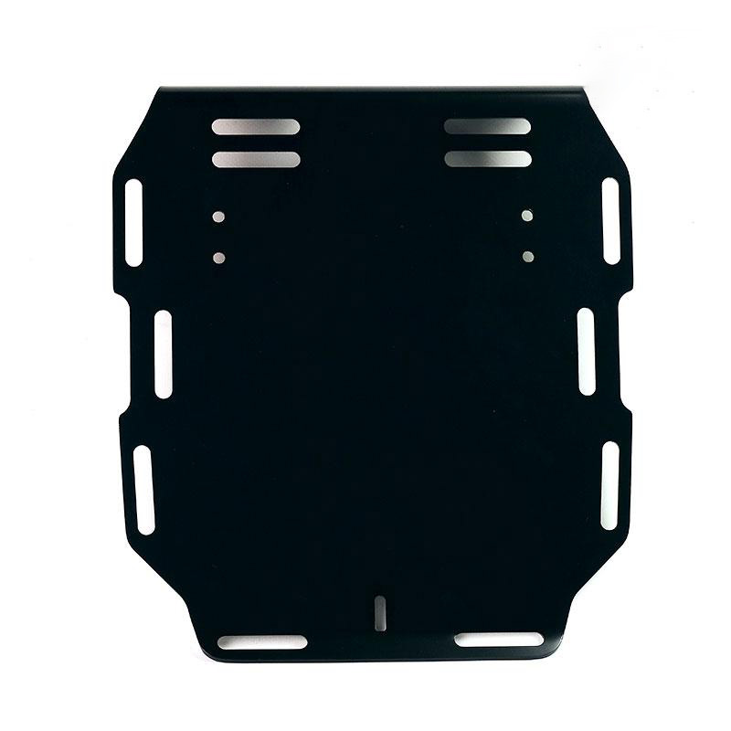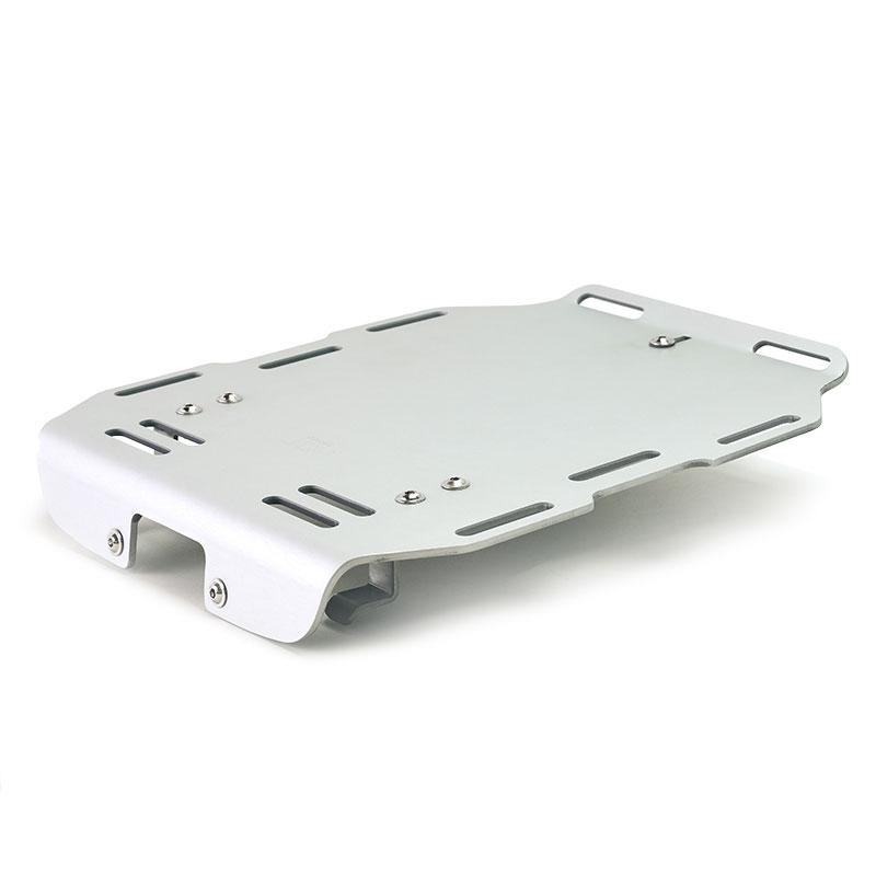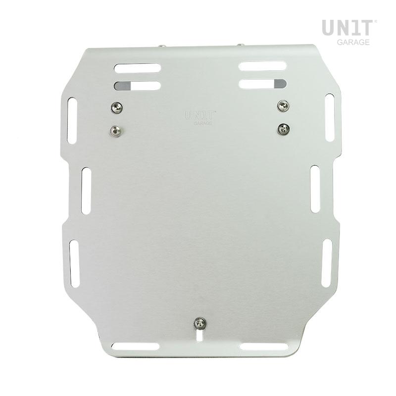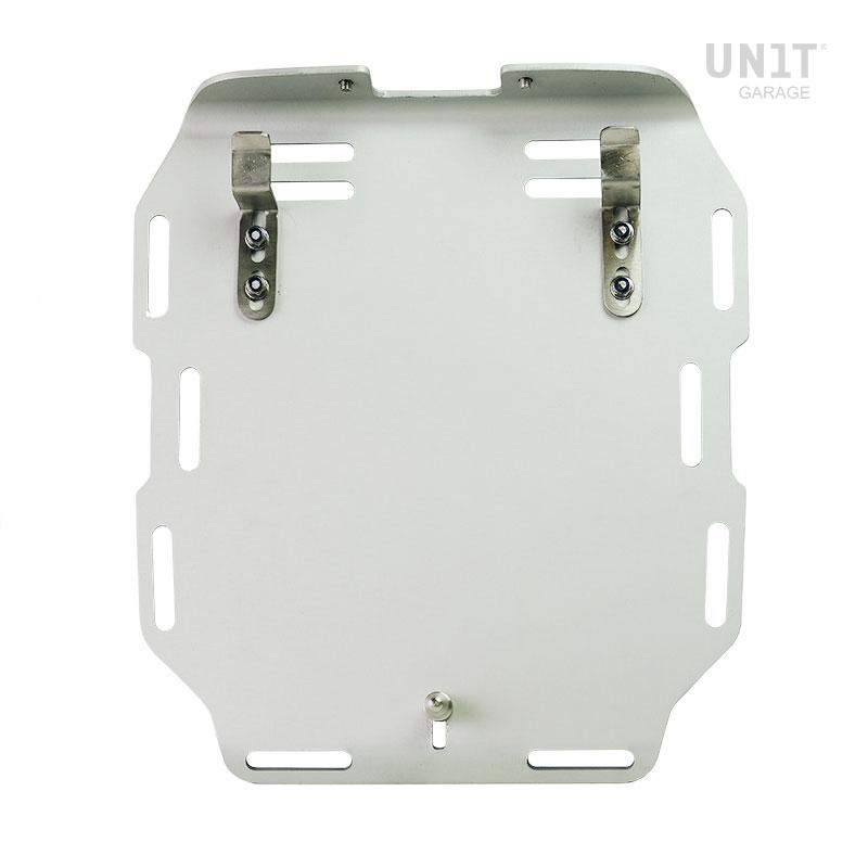 Cette platine se monte en quelques secondes à la place de la selle passager, elle maintient le déverrouillage avec la clé d'origine comme la selle. Une fois monté, il augmente considérablement la surface de chargement et vous permet de faire avancer vos bagages lorsque vous voyagez seul, vous aurez un meilleur équilibre de poids avec un avantage de conduite notable aussi bien sur route qu'en tout-terrain. Fabriqué en aluminium anodisé de 4 mm d'épaisseur, il peut être utilisé avec ou sans le porte-bagages d'origine et avec la selle pilote en position haute et basse. Il est équipé de fentes pour la fixation de bandes telles que nos bandes UG008.