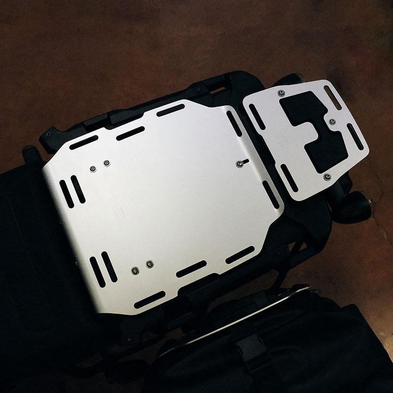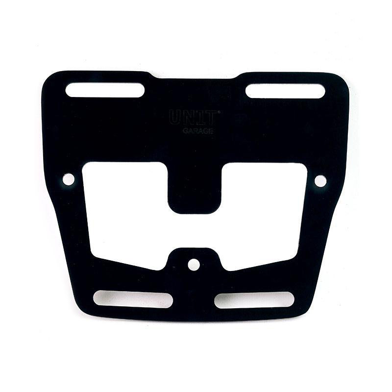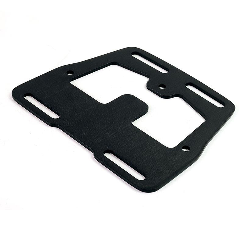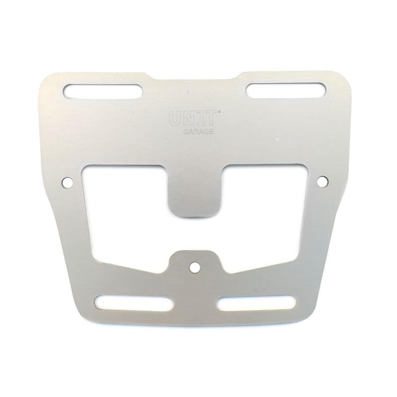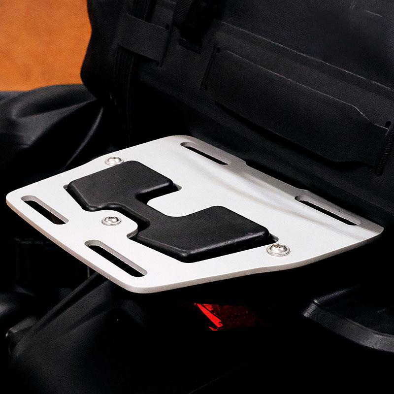 Cette plaque se monte uniquement en enlevant la poignée passager d'origine et rend l'arrière plus agressif. Il est généralement monté en combinaison avec le code 3311 pour maximiser la surface de chargement. Réalisé en aluminium anodisé épaisseur 4 mm, il est équipé de fentes pour la fixation de bandes telles que nos bandes UG008. Le siège passager reste utilisable.